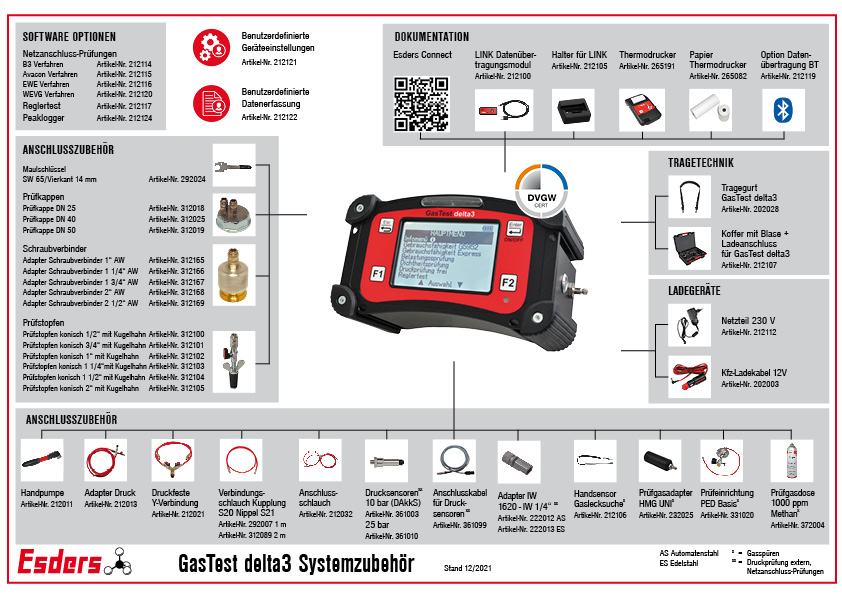 Umfangreiches Anschlusszubehör und Adapter für Prüfungen nach TRGI 2018 bzw. DVGW G 495 (A) finden Sie auch hier.