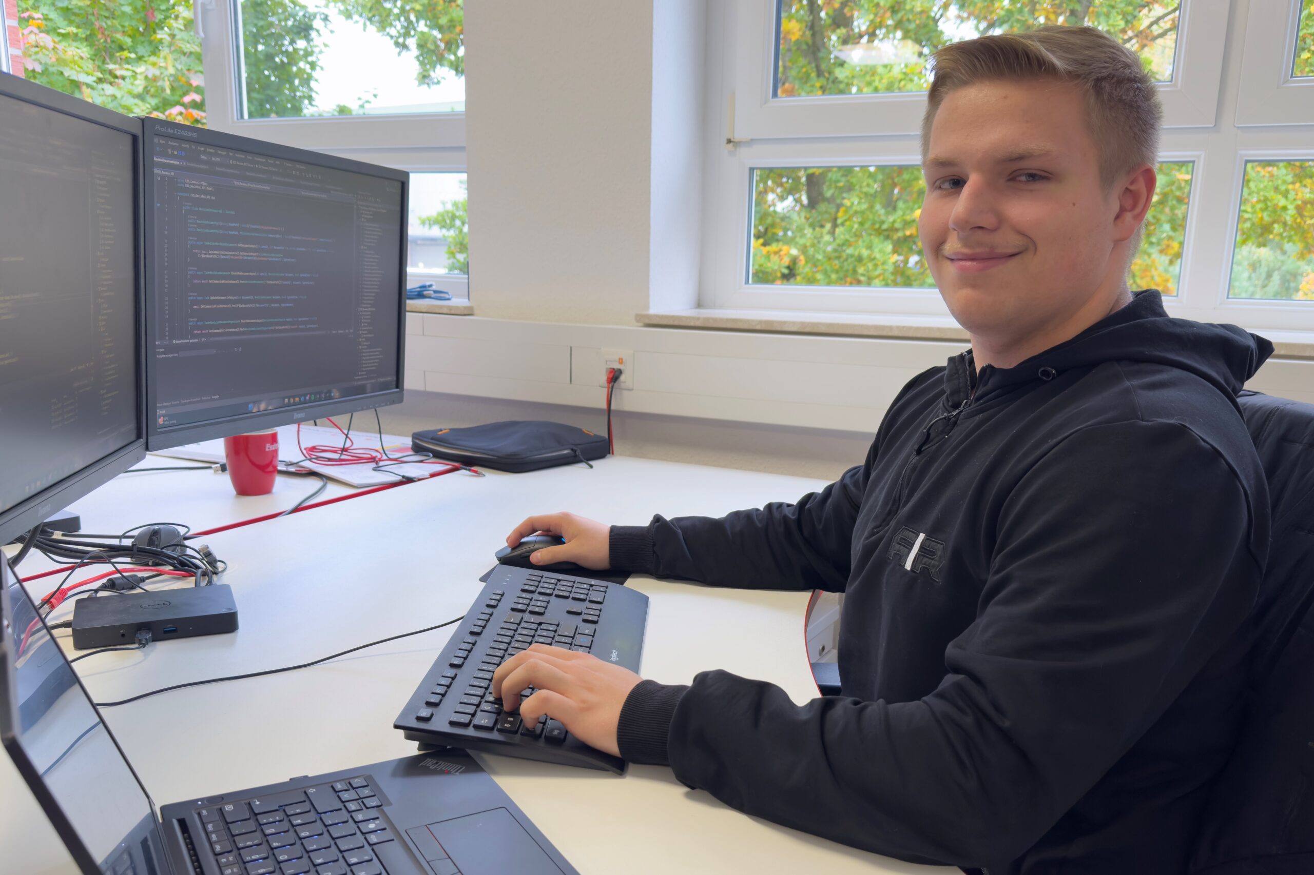 Besonders gefällt mir, dass ich schon früh eigenständig arbeiten darf, aber jederzeit Unterstützung von meinen Kolleg:innen bekomme. Am meisten Spaß macht mir das Programmieren selbst – zu sehen, wie aus einer Idee Schritt für Schritt ein funktionierendes Programm wird. Außerdem schätze ich den Austausch im Team, weil man dabei viel lernt und die Arbeit nie langweilig wird.