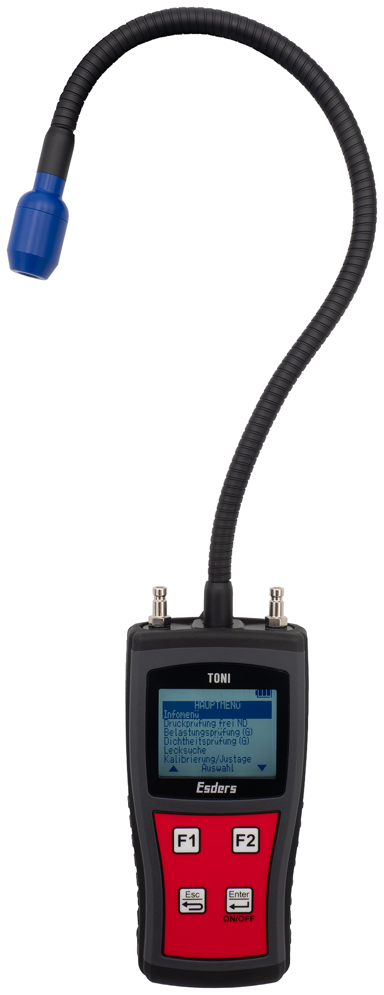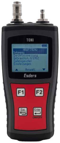 Das TONI FlowTest kombiniert kompakte Geräteplattform mit praxisgerechter Funktionalität. Es ermöglicht normgerechte Durchfluss-, Dichtheits- und Belastungsprüfungen an Gasinstallationen. Dabei dokumentiert es alle Ergebnisse digital und rechtssicheren Nachweis mit unserer App Esders Connect.